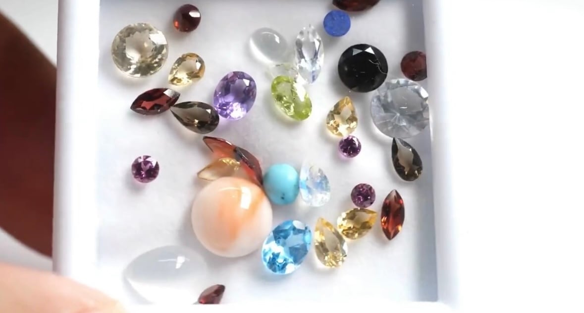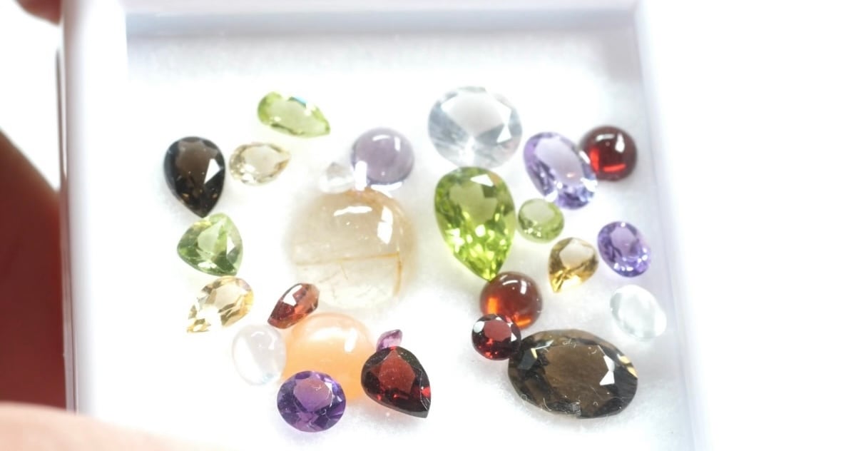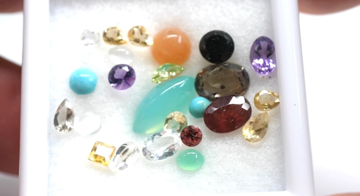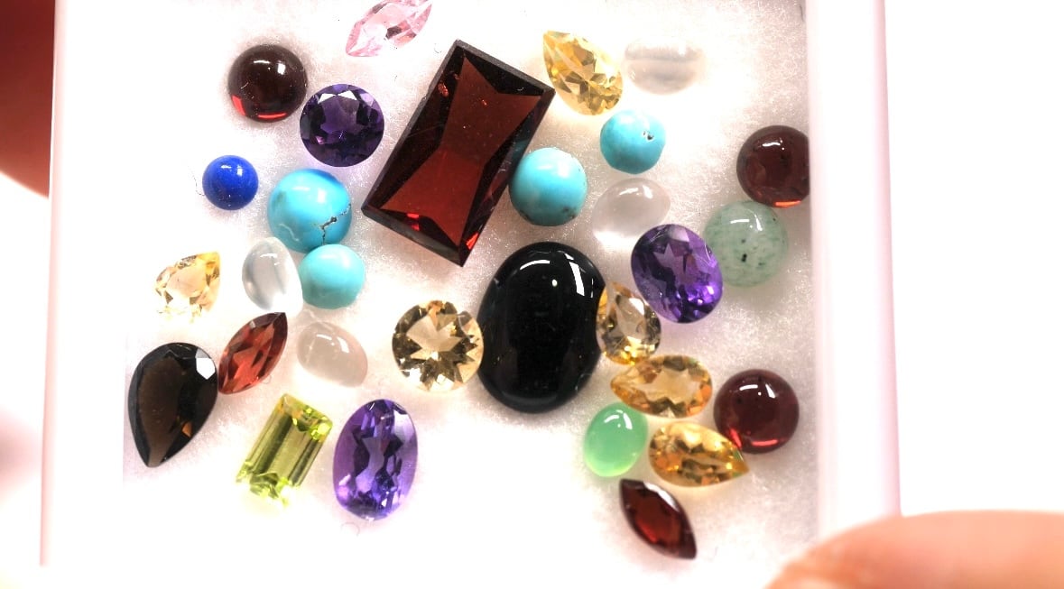 ※こちらの商品は、天然石をミックスた状態でルースケースの中に入れてお届けするため、1石1石の宝石名記載はございませんので、予めご了承ください。