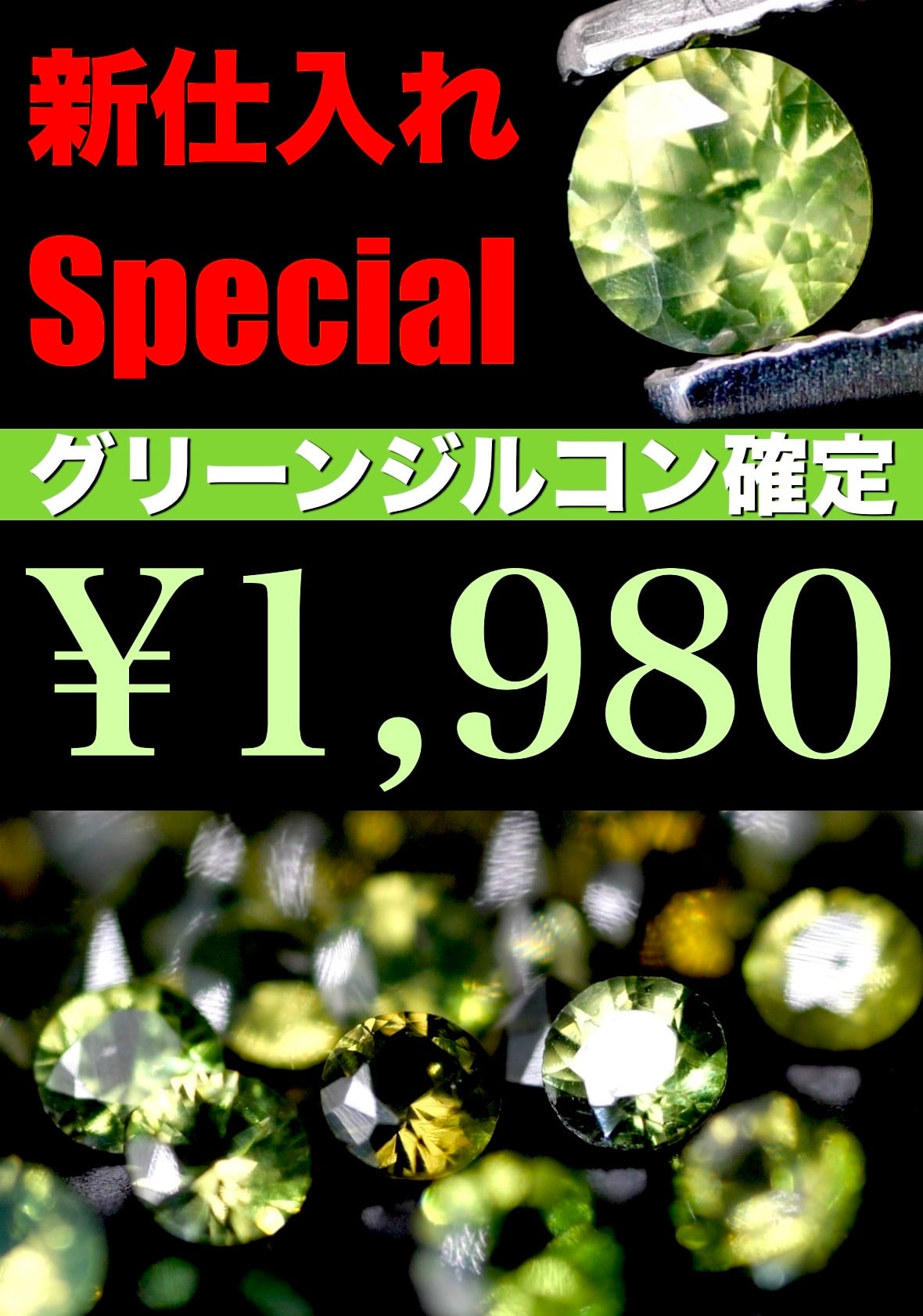 【Special品】グリーンジルコン確定、新仕入れ5石1,980円イベント[V-89]